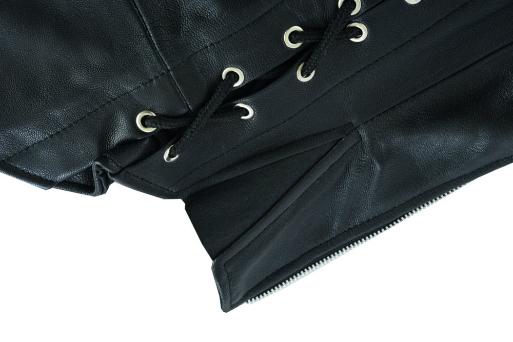 Soft Satin underlining for comfortable riding in hot or cold weather.